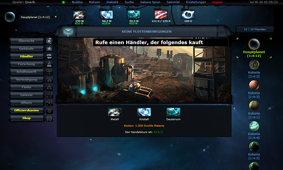OGame ist ein Strategiespiel, bei dem tausende Spieler gleichzeitig gegeneinander um die Vorherrschaft im Weltraum antreten. Zum Spielen brauchst du nur einen normalen Webbrowser.